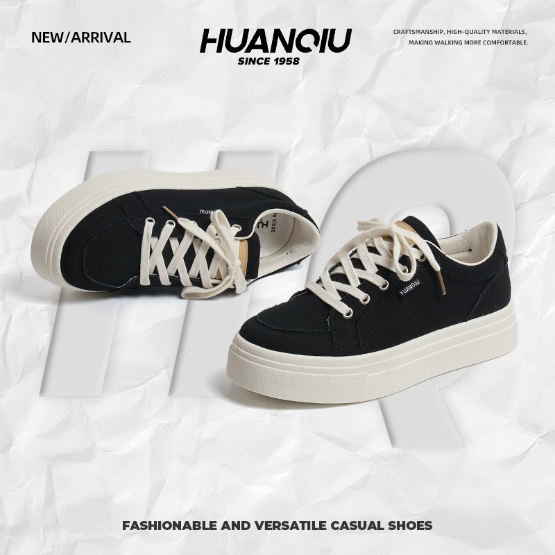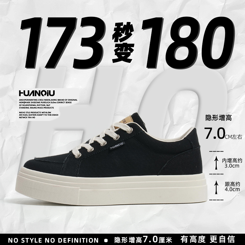 环球2025春秋新款黑色帆布厚底内增高男款学生百搭运动休闲潮板鞋