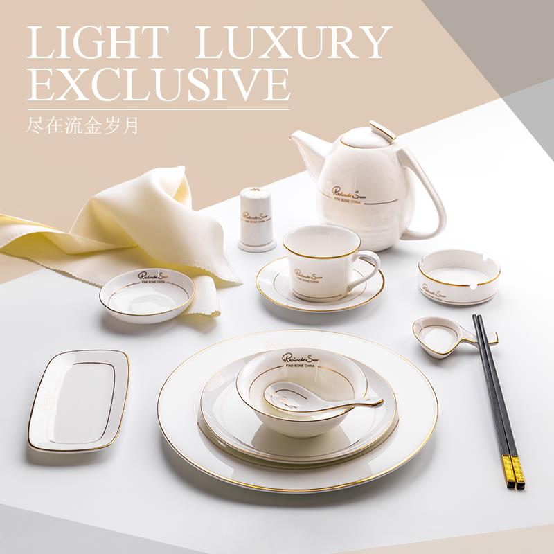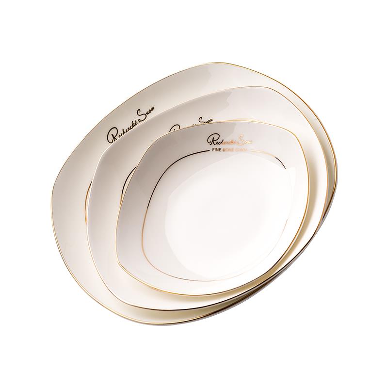 创意骨瓷金边欧式家用菜盘北欧陶瓷早餐盘子碟子碗碟餐具套装深盘