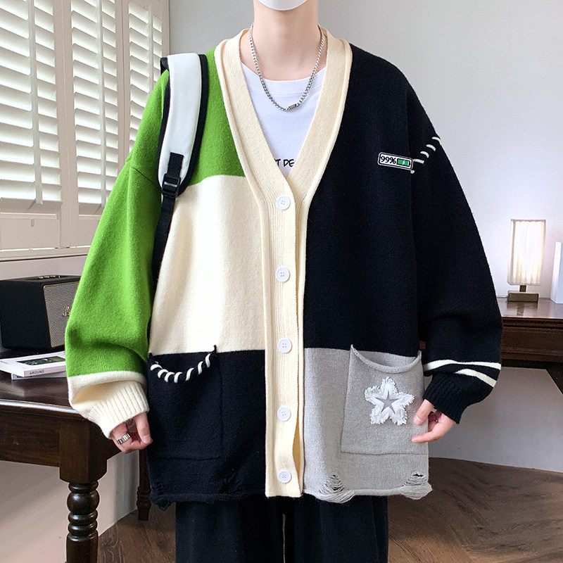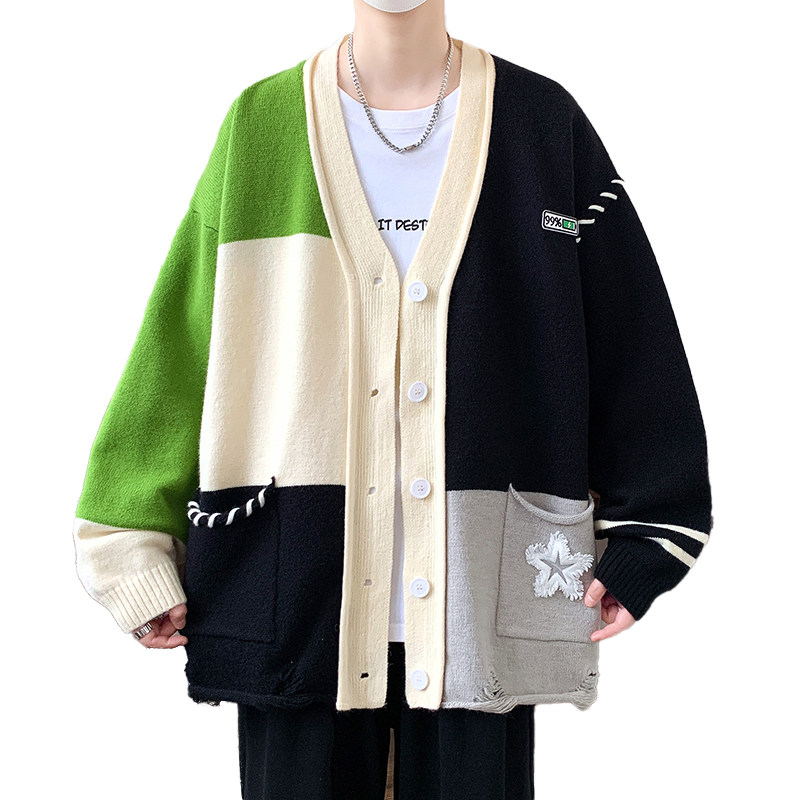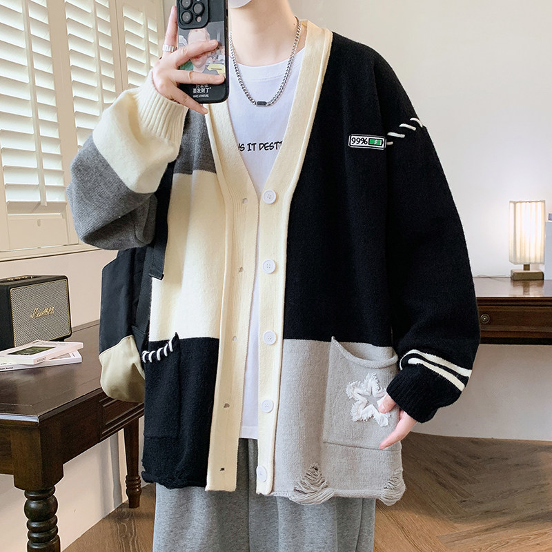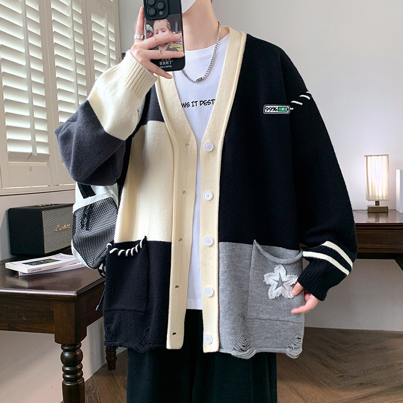 开衫毛衣男款外套2026春秋款V领针织衫宽松帅气青少年毛线衣以純