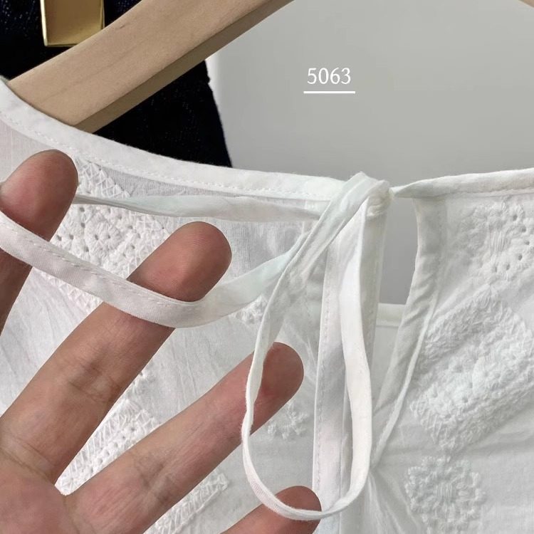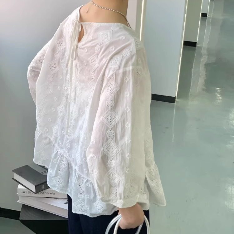 韩版圆领刺绣镂空泡泡袖t恤新款