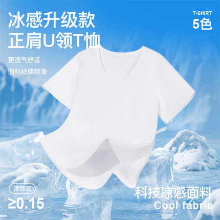 YUZI鱼子正肩U领冰皮T恤大码女装微胖mm显瘦遮肉