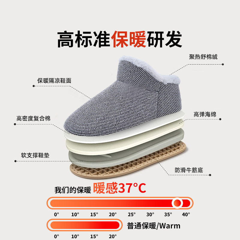 男士棉鞋老年人防滑防摔老人专用牛筋底耐磨家居保暖包跟棉拖鞋冬