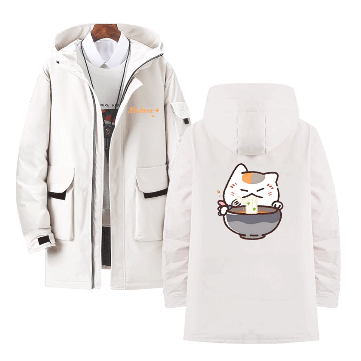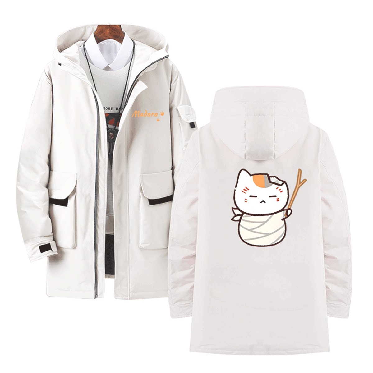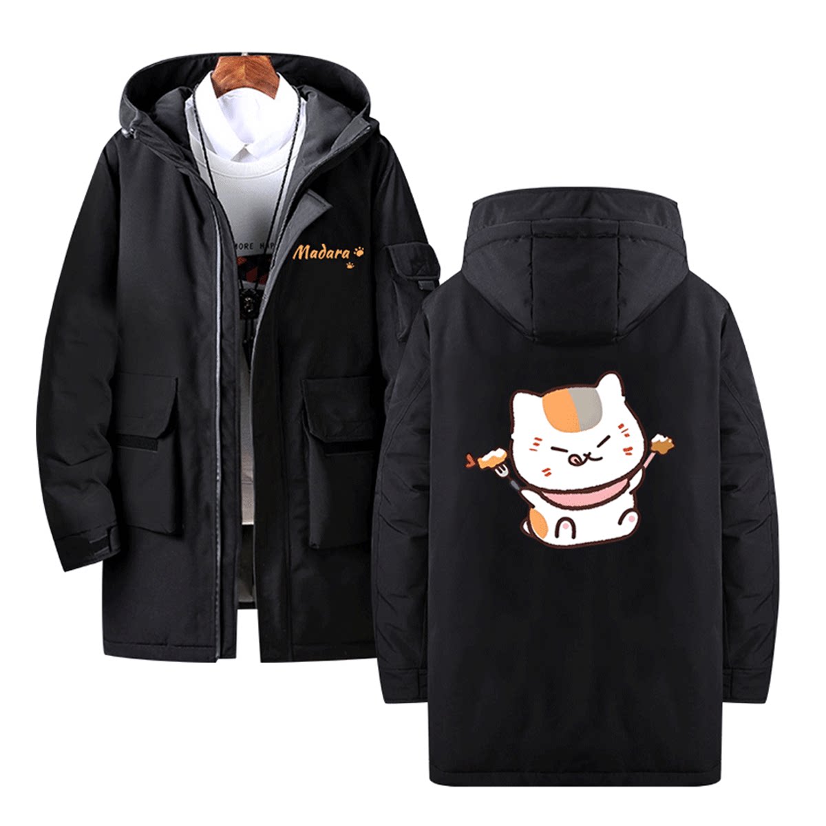 夏目友人帐猫咪老师动漫周边Q版男女可定制外套连帽中长款羽绒服