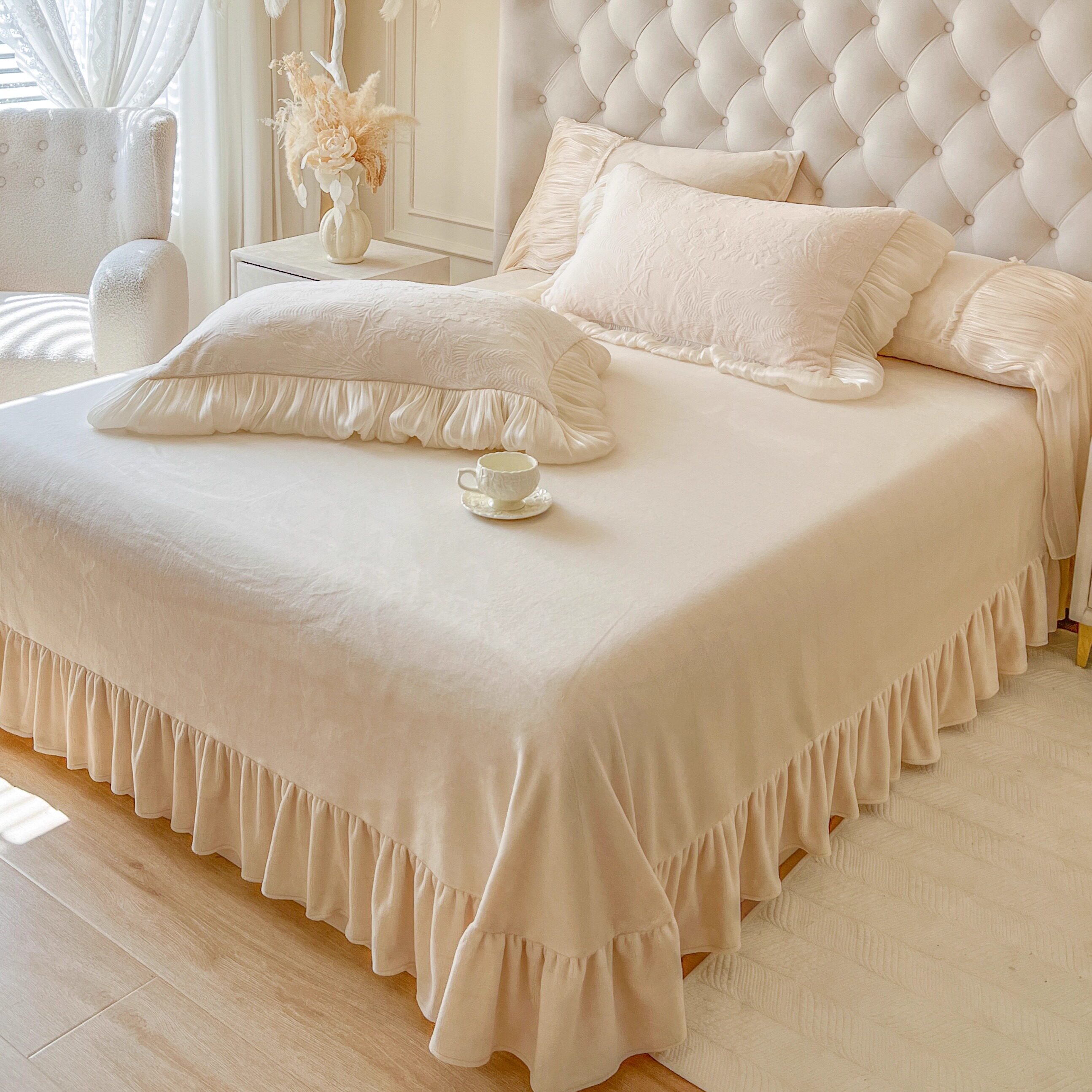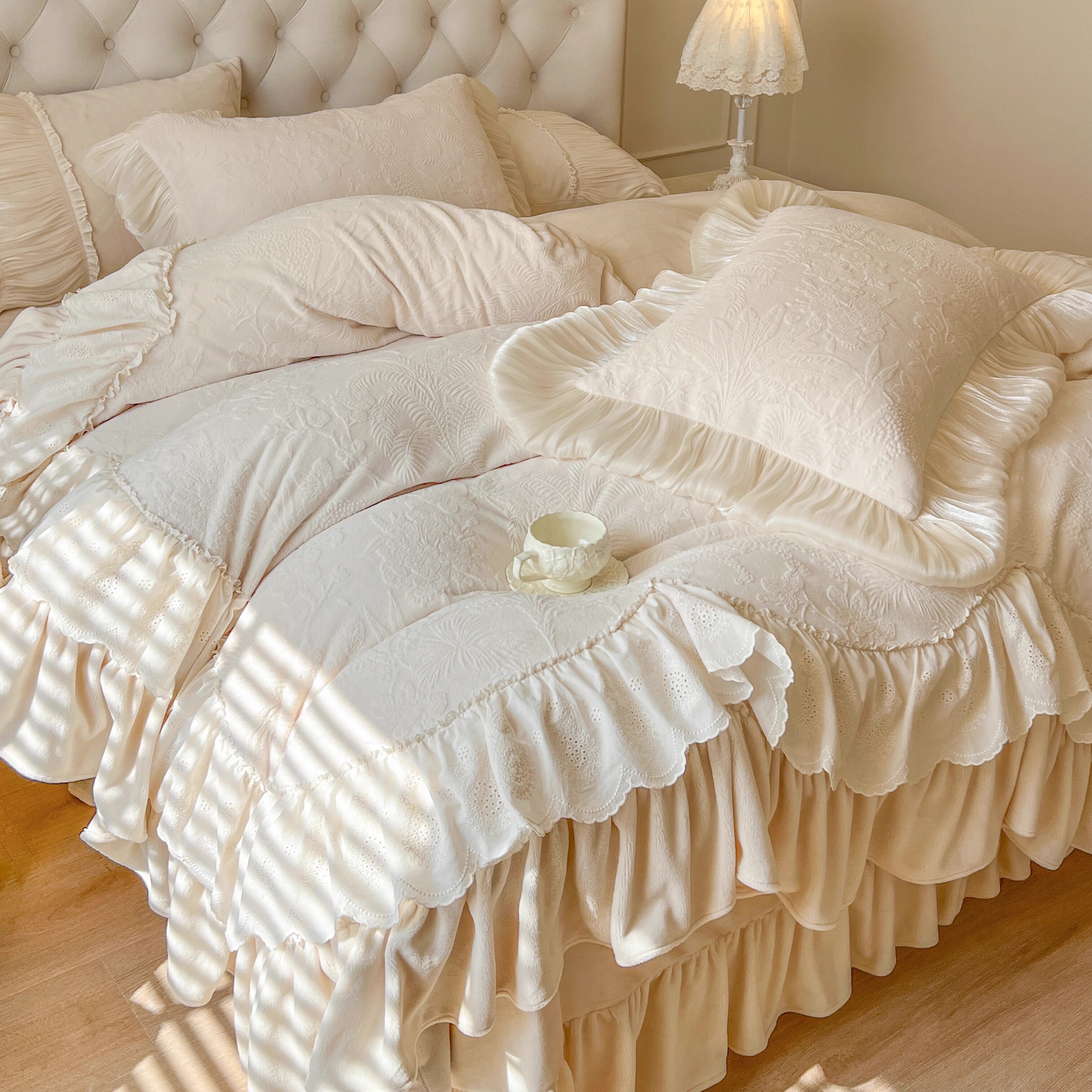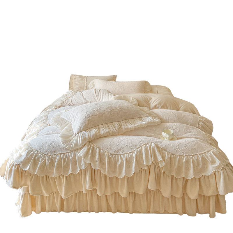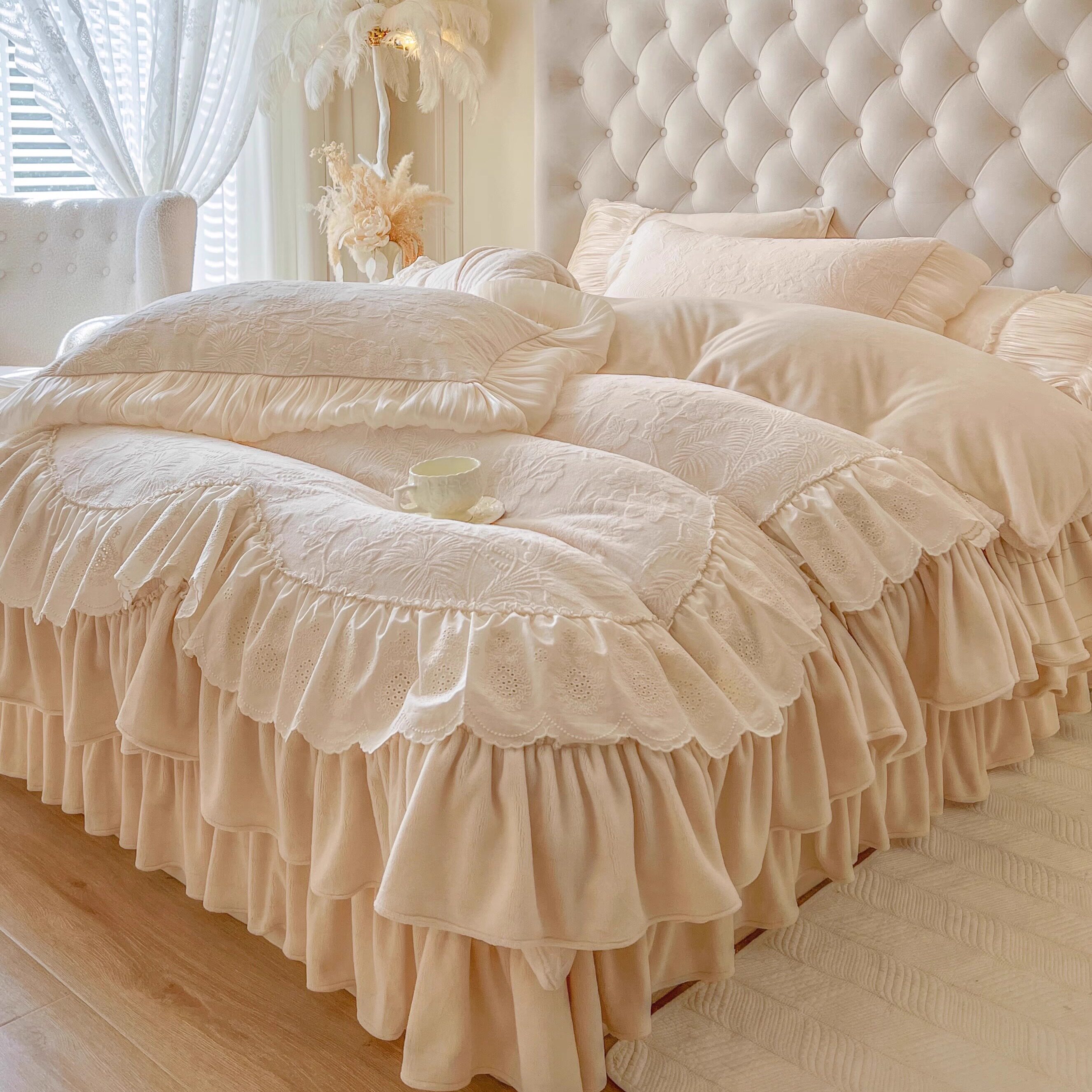 法式冬季加绒牛奶绒四件套公主风珊瑚绒仙女蕾丝被套加厚保暖床品