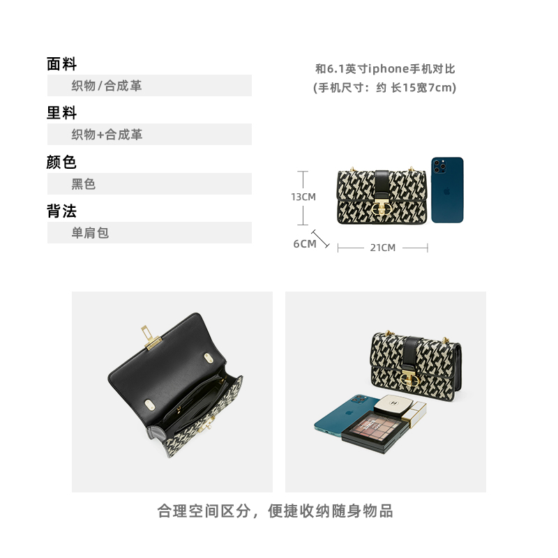 卓诗尼包包女2024冬季新款小方包链条单肩斜挎包线下专柜商场同款