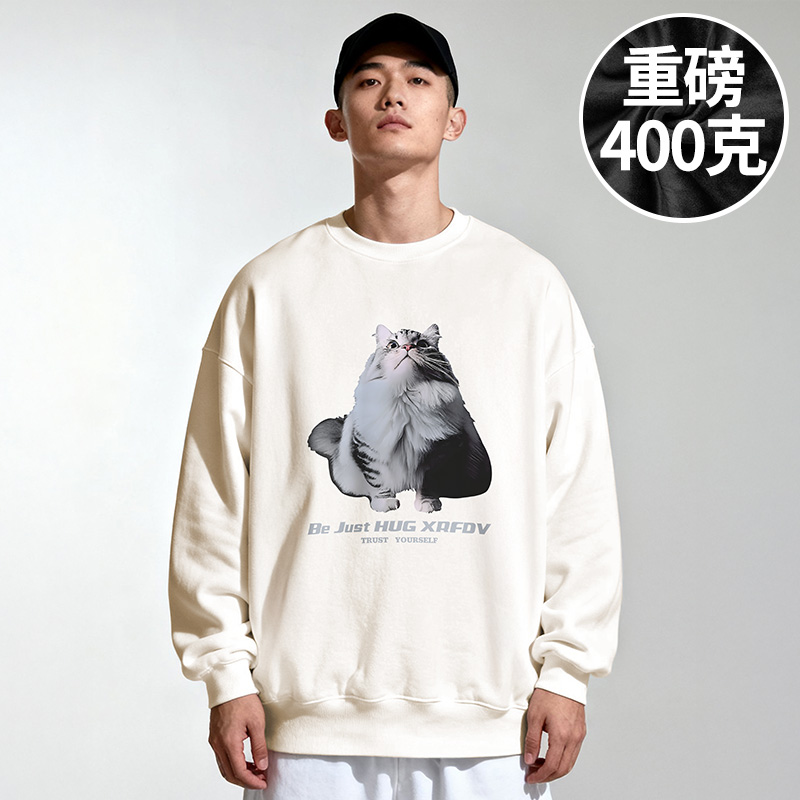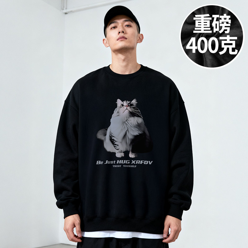【品牌男装】美式潮牌大码男装加肥加大胖子圆领加绒卫衣男秋冬季