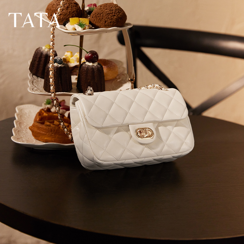TATA他她小香风菱格单肩包女士包包黑色通勤斜挎包小方包2025新款