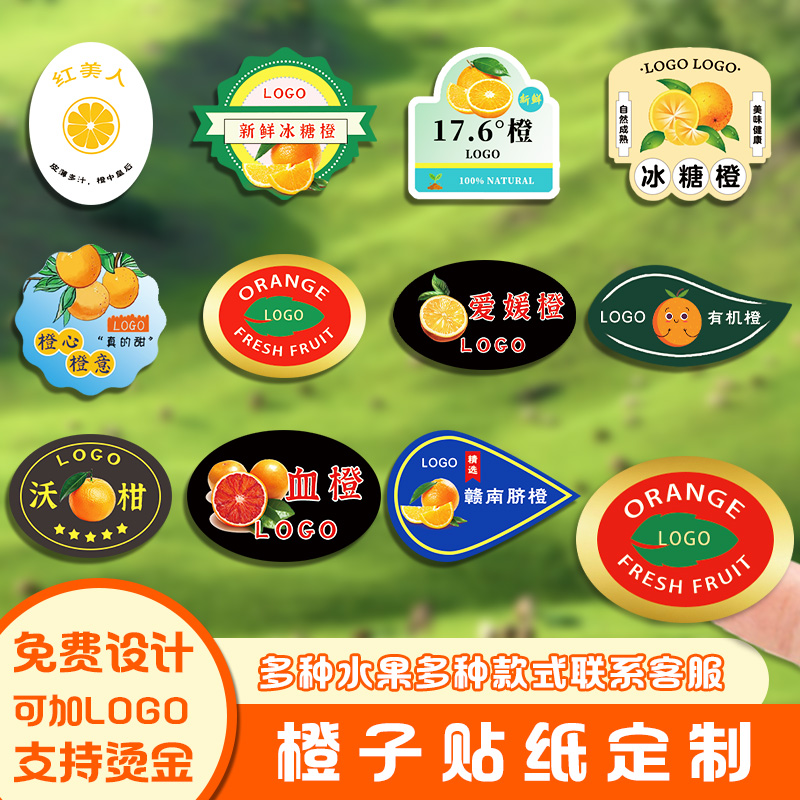 烫金金桔贴纸定制砂糖桔标签沃柑贴画皇帝柑耙耙柑水果不干胶