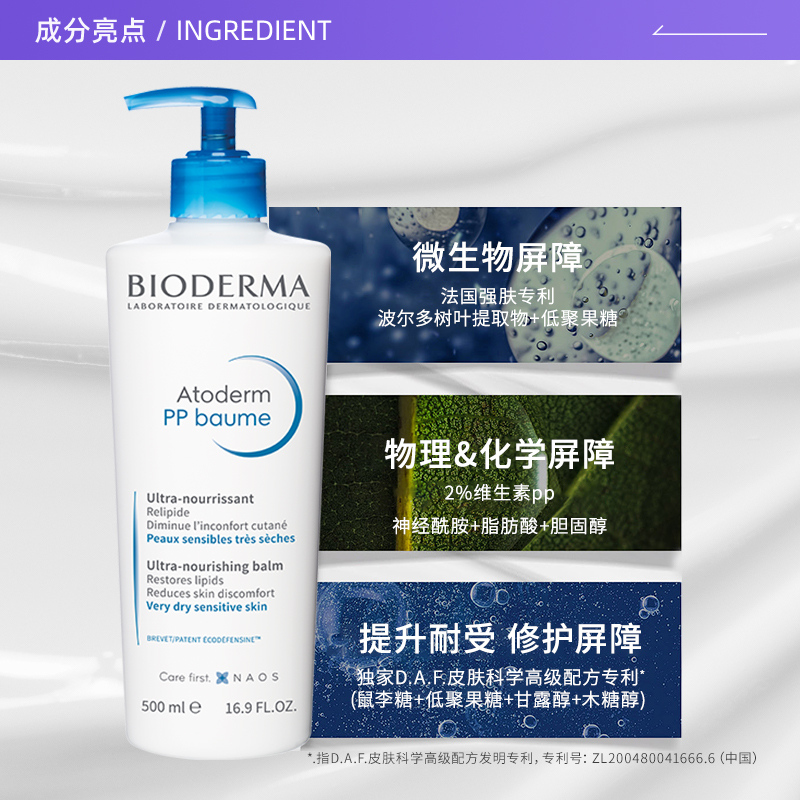【自营】Bioderma/贝德玛PP霜烟酰胺修护屏障保湿滋润身体乳500ml