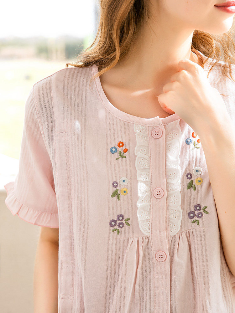 家时光哺乳睡裙夏季纯棉纱布薄款连衣裙孕妇睡裙产妇待产裙家居服