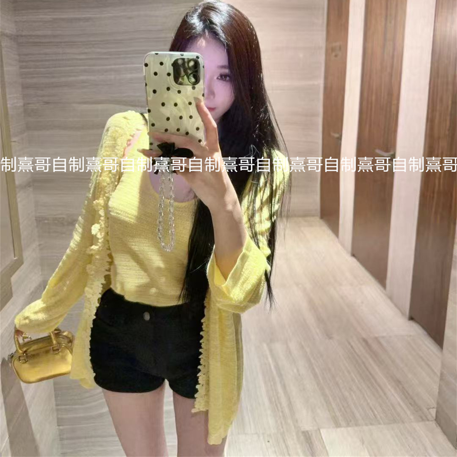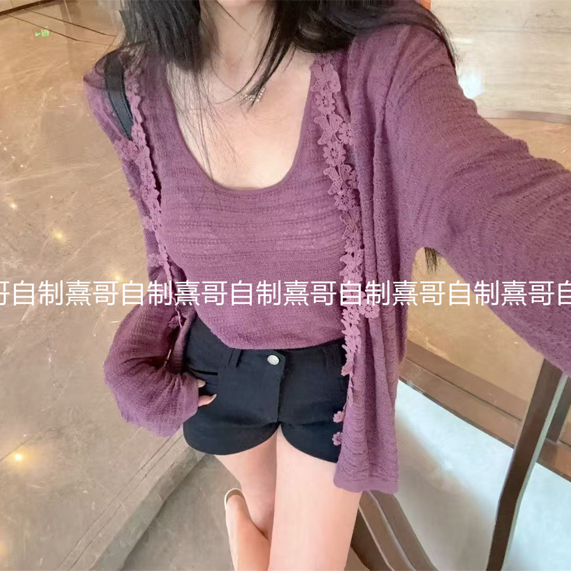 法式温柔风蕾丝拼接v领针织开衫女秋季新款设计感小众上衣两件套