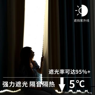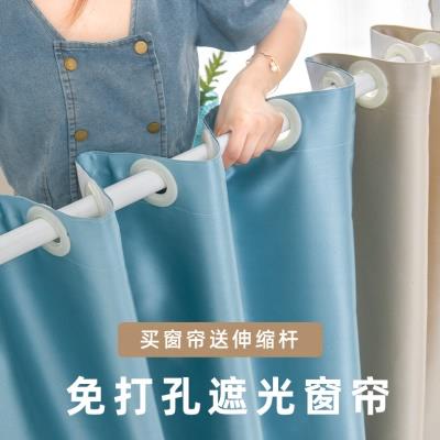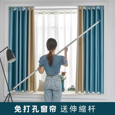窗帘免打孔安装卧室隔热新款出租房飘窗全遮光布伸缩杆一整套短帘