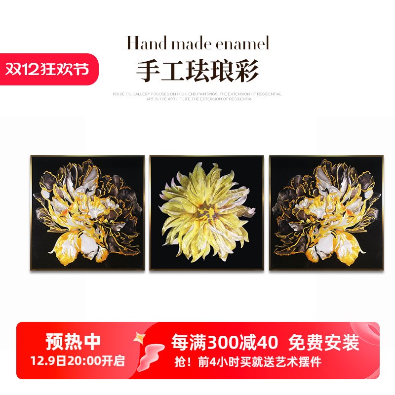 瑞杰 珐琅彩画《怒放》现代轻奢客厅装饰画 新古典沙发背景墙挂画