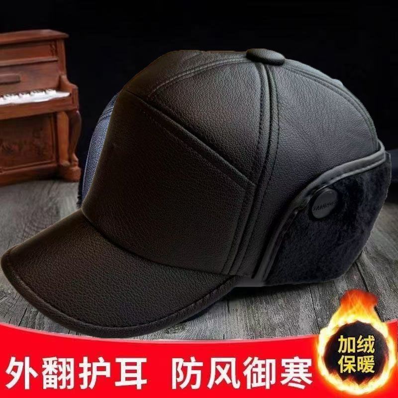 中老年帽子男士冬季加厚加绒保暖皮帽老人冬天鸭舌帽老头护耳爸爸