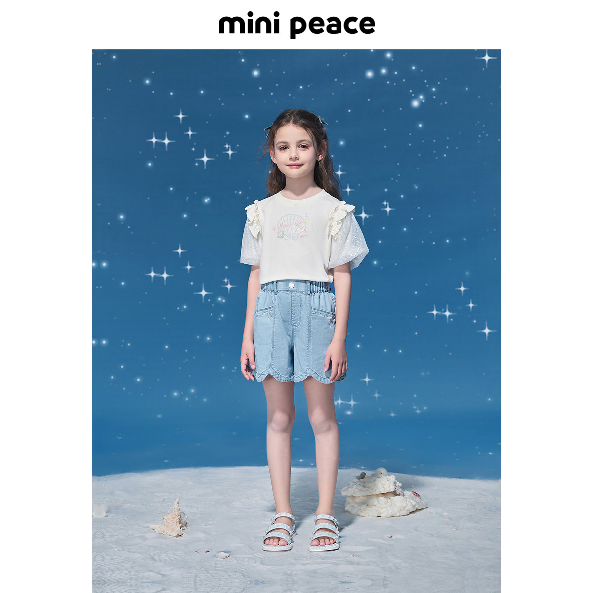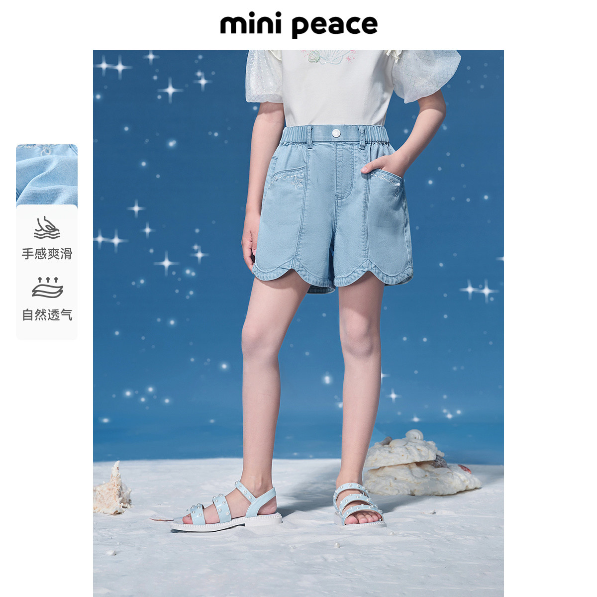 MINIPEACE太平鸟童童女童短裤夏季新款儿童珍珠夏季牛仔裤五分裤