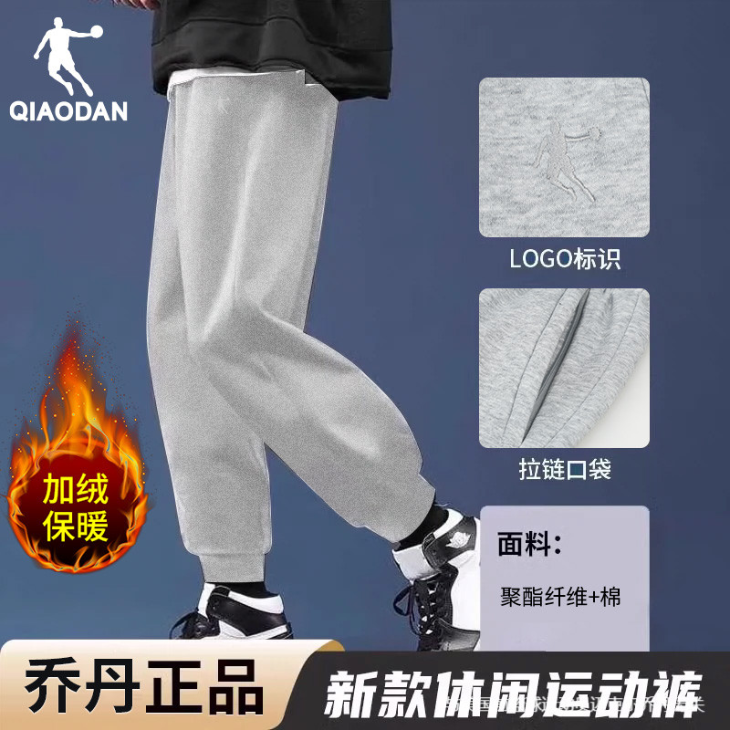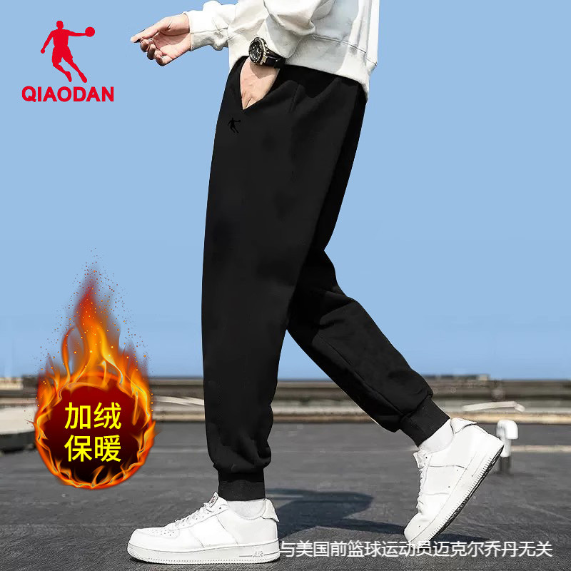 乔丹运动裤男加绒裤子男款2025新款秋冬保暖加厚休闲长裤黑色卫裤