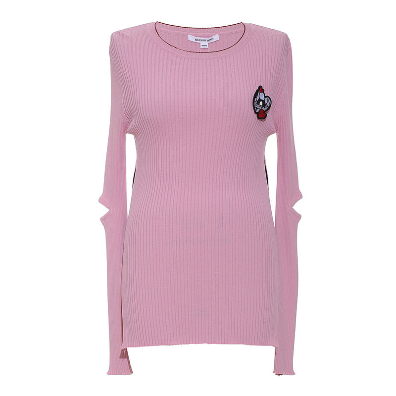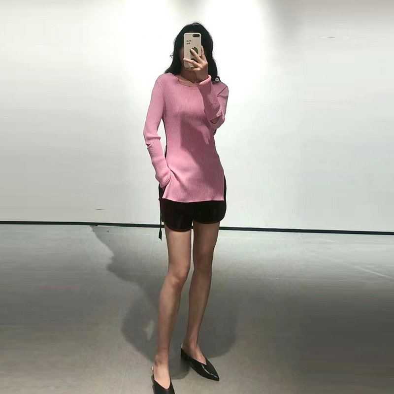 季候风直销秋新款纯色时尚开叉撞色长袖套头针织毛衣女6682TA303