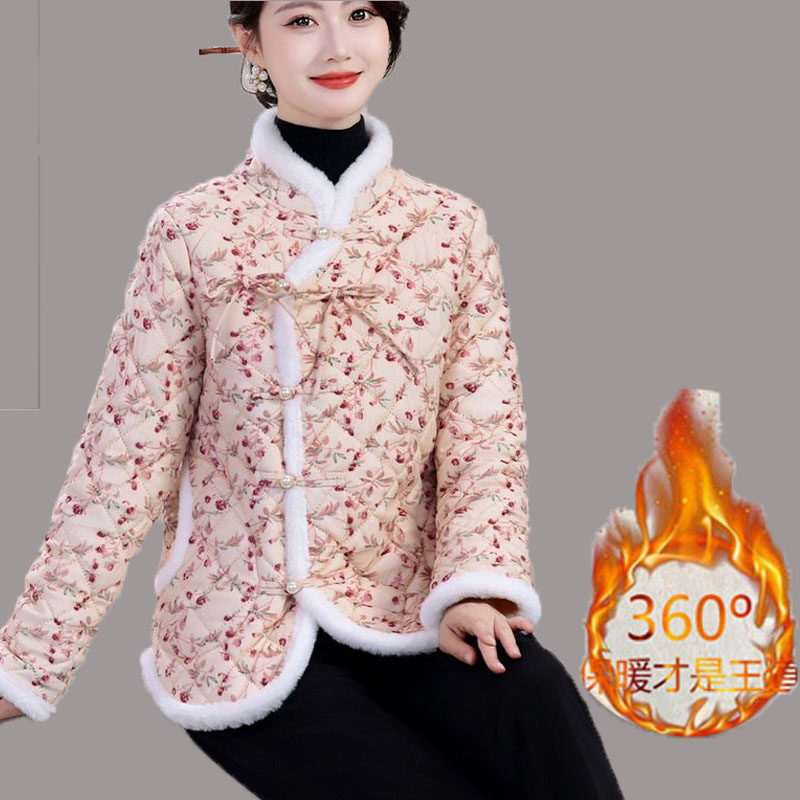 网红小花棉袄中国风洋气棉衣保暖驼绒加厚30到40岁年轻人旗袍女装