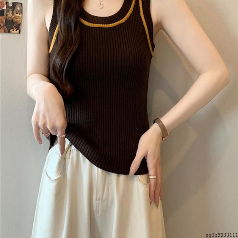 撞色U领针织吊带背心女2025秋冬大码胖mm显瘦内搭无袖打底衫上衣