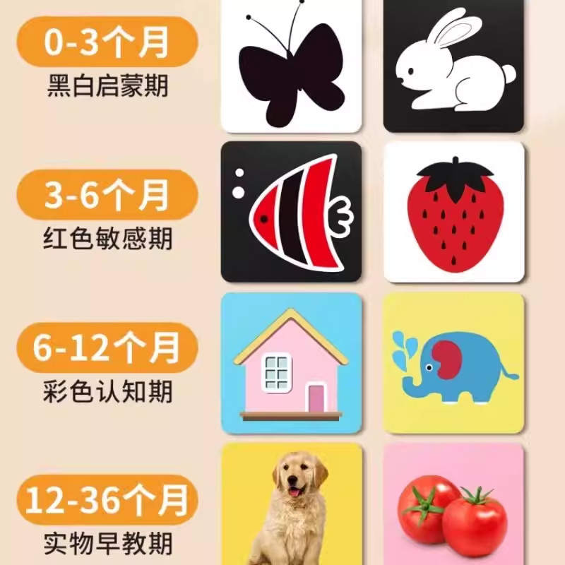 黑白卡片婴儿早教卡新生的儿视觉激发卡0到3个月宝宝追视幼儿玩具