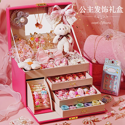 儿童首饰盒公主饰品礼盒小女孩发饰女童发夹多层大容量收纳盒套装