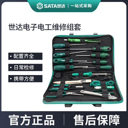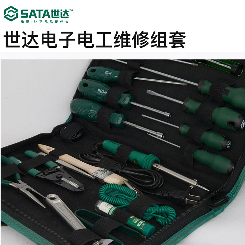 SATA世达电子工具套装家庭维修万用表剥线钳电烙铁专用组合工具包