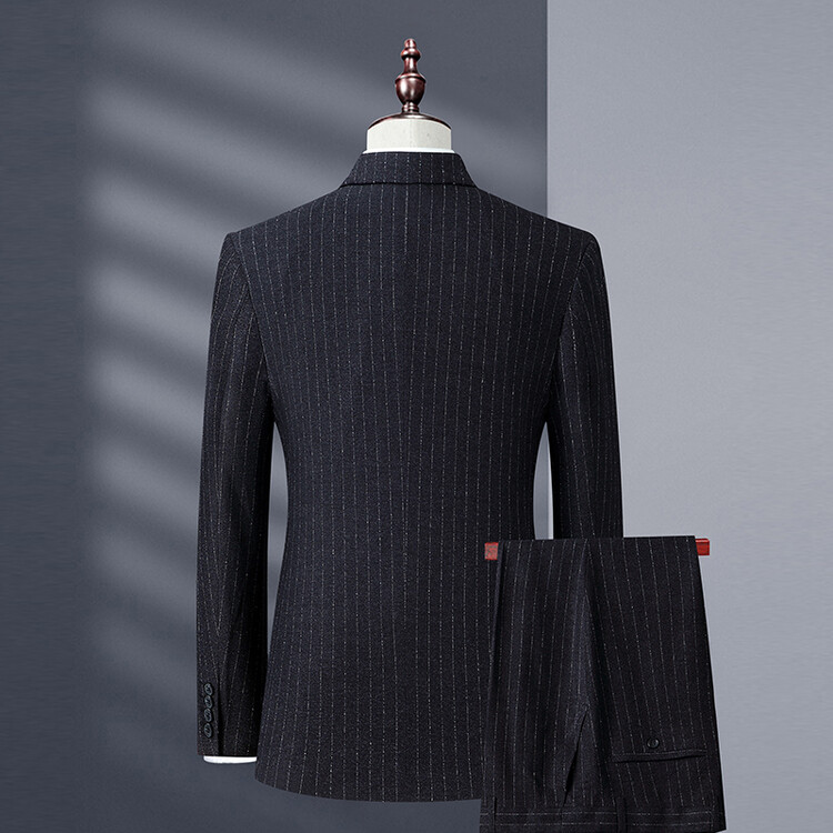 高端休闲西装套装男伴郎新郎商务正装条纹显瘦结婚西服礼服两件套