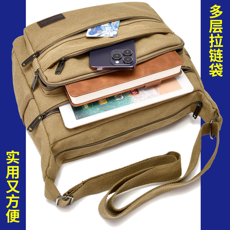 帆布包男式单肩包多层口袋斜挎包大容量背包耐磨工具包劳保收钱包