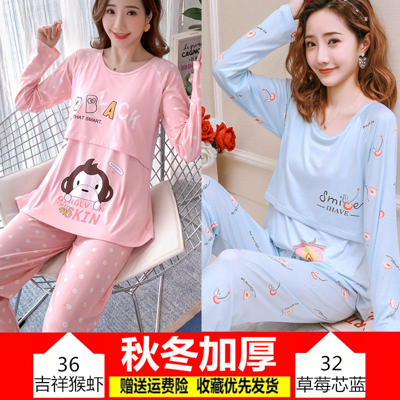 月子服春秋冬纯棉产后产妇哺乳孕妇睡衣夏H季薄款7月份9夏天家居1