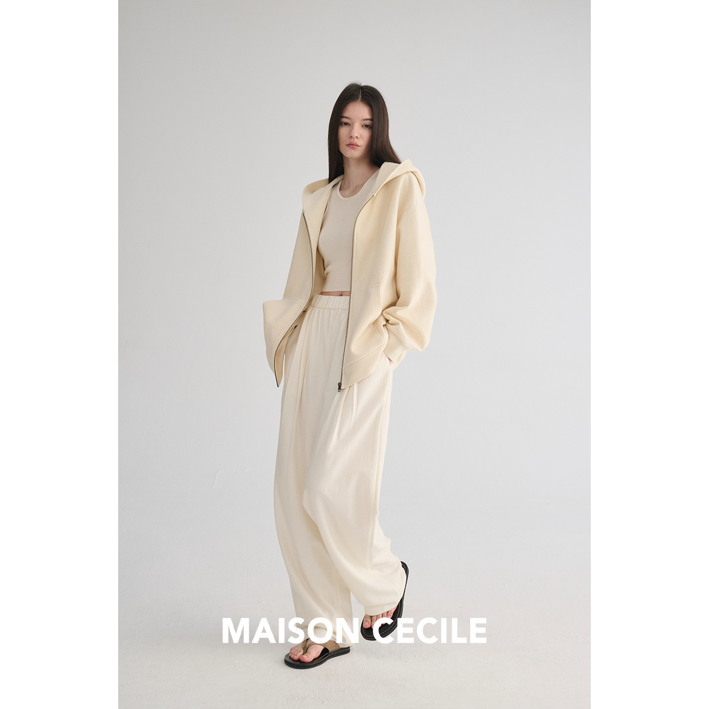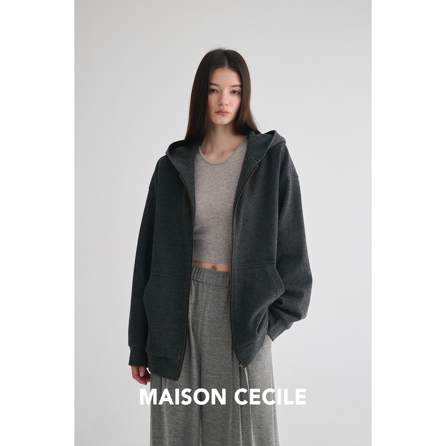 MAISON CECILE 四色/秋冬羊毛厚织宽松极简廓形连帽卫衣外套