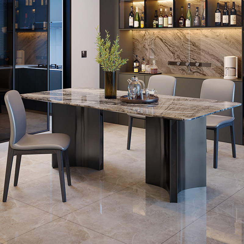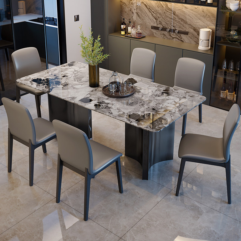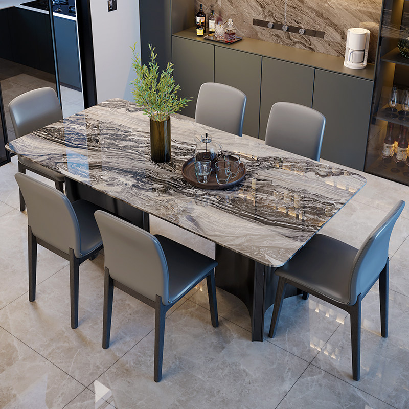 斯帝罗兰轻奢大理石餐桌现代简约长方形家用餐桌椅组合小户型奥利