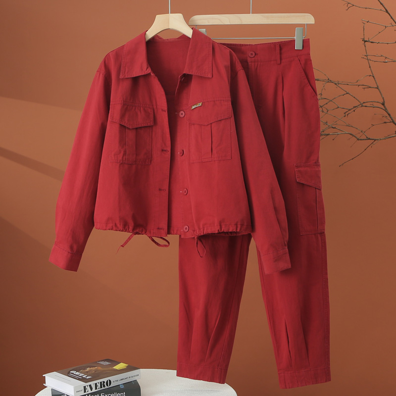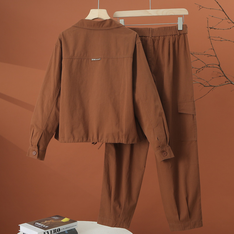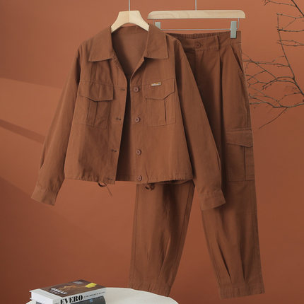 时尚工装牛仔套装女秋季2025新款小个子洋气减龄休闲哈伦裤两件套