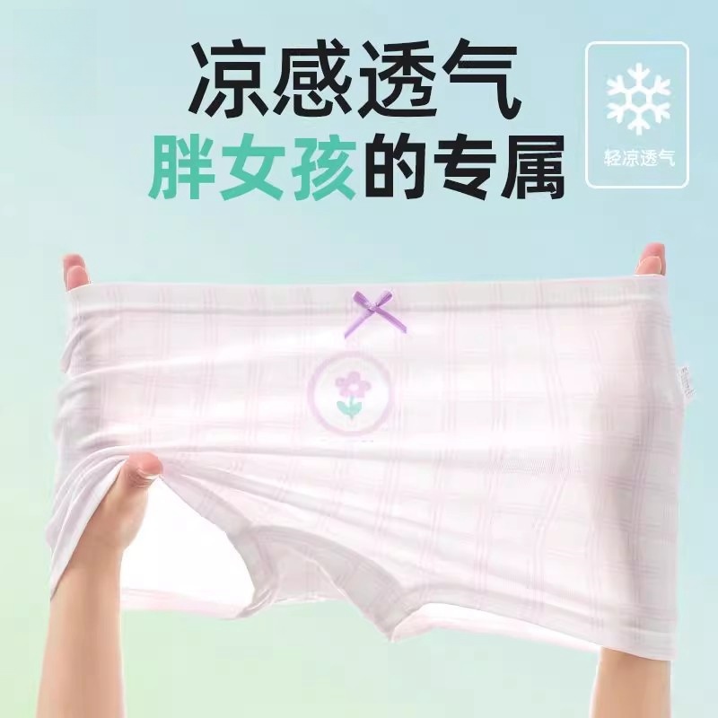 大码抗菌冰丝女童内裤加肥加平角莫代尔夏季薄款儿童四角短裤底裤