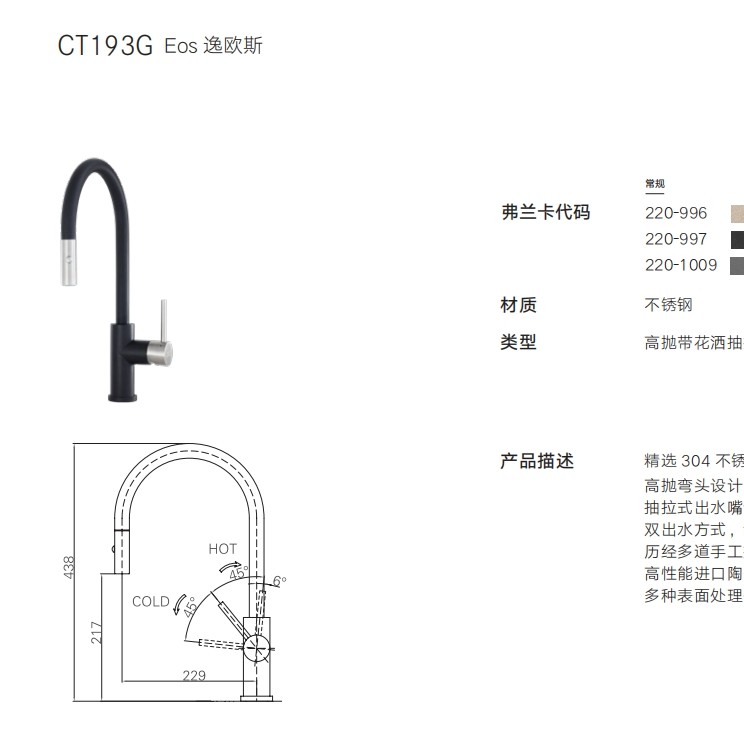 FRANKE瑞士弗兰卡厨房水龙头石槽龙头抽拉龙头花岗岩龙头CT193G