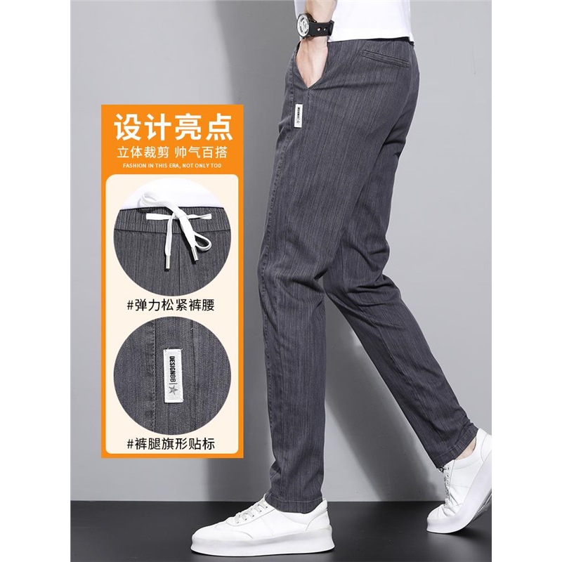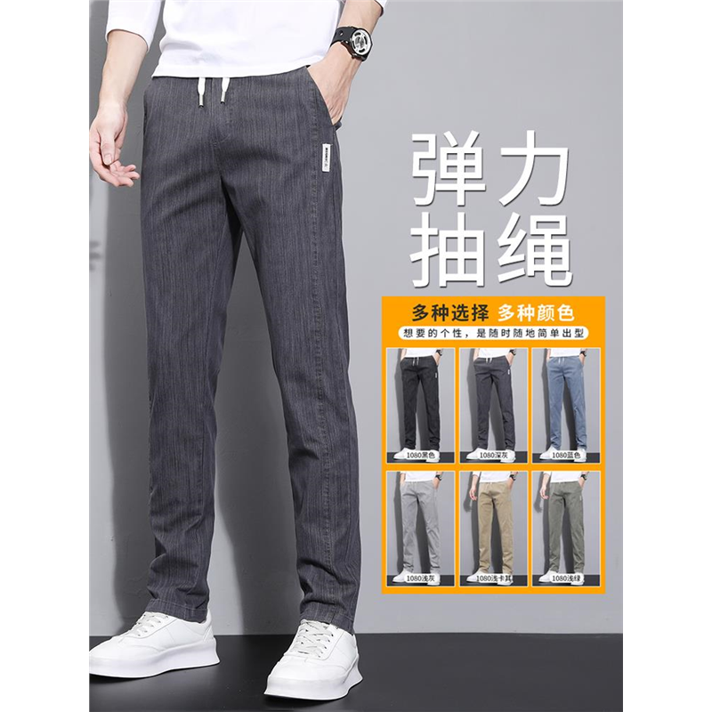 以纯YISHION松紧带牛仔裤男秋季宽松裤子直筒男裤抽绳男士休闲裤