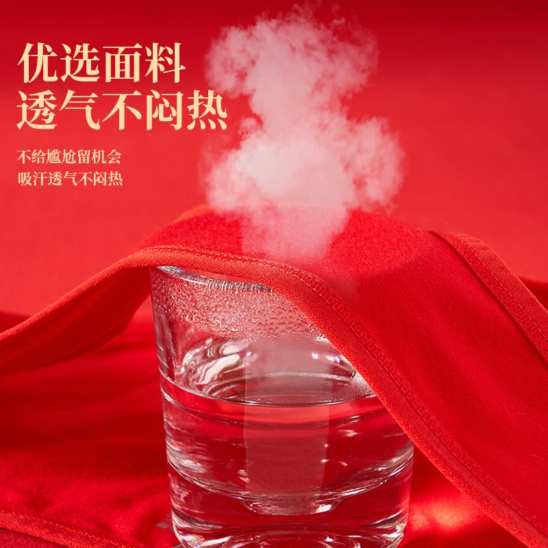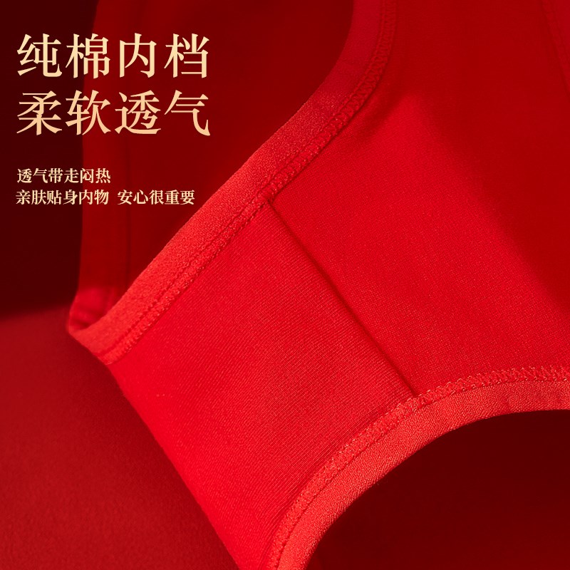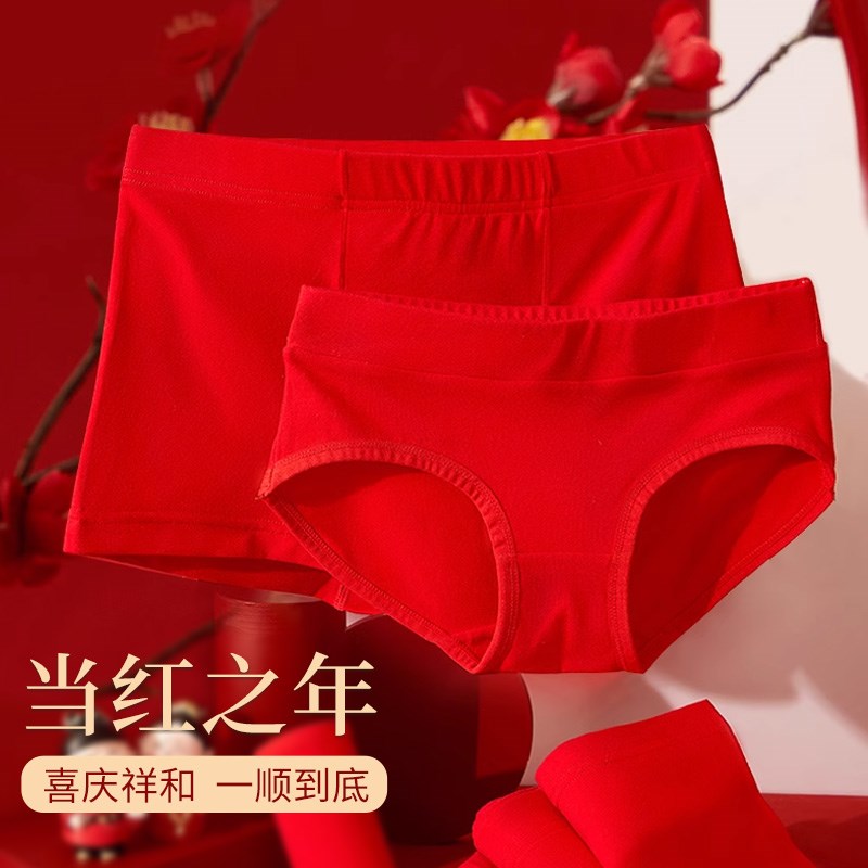 本命年大红色内裤男女纯棉情侣结婚一对蛇年鸿运中高腰女士三角裤