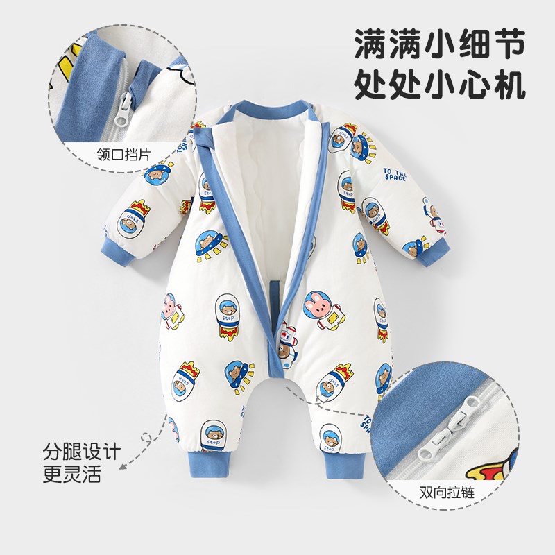 婴儿睡袋秋冬夹棉宝宝加厚防踢被新生儿恒温分腿睡衣男女儿童睡袋