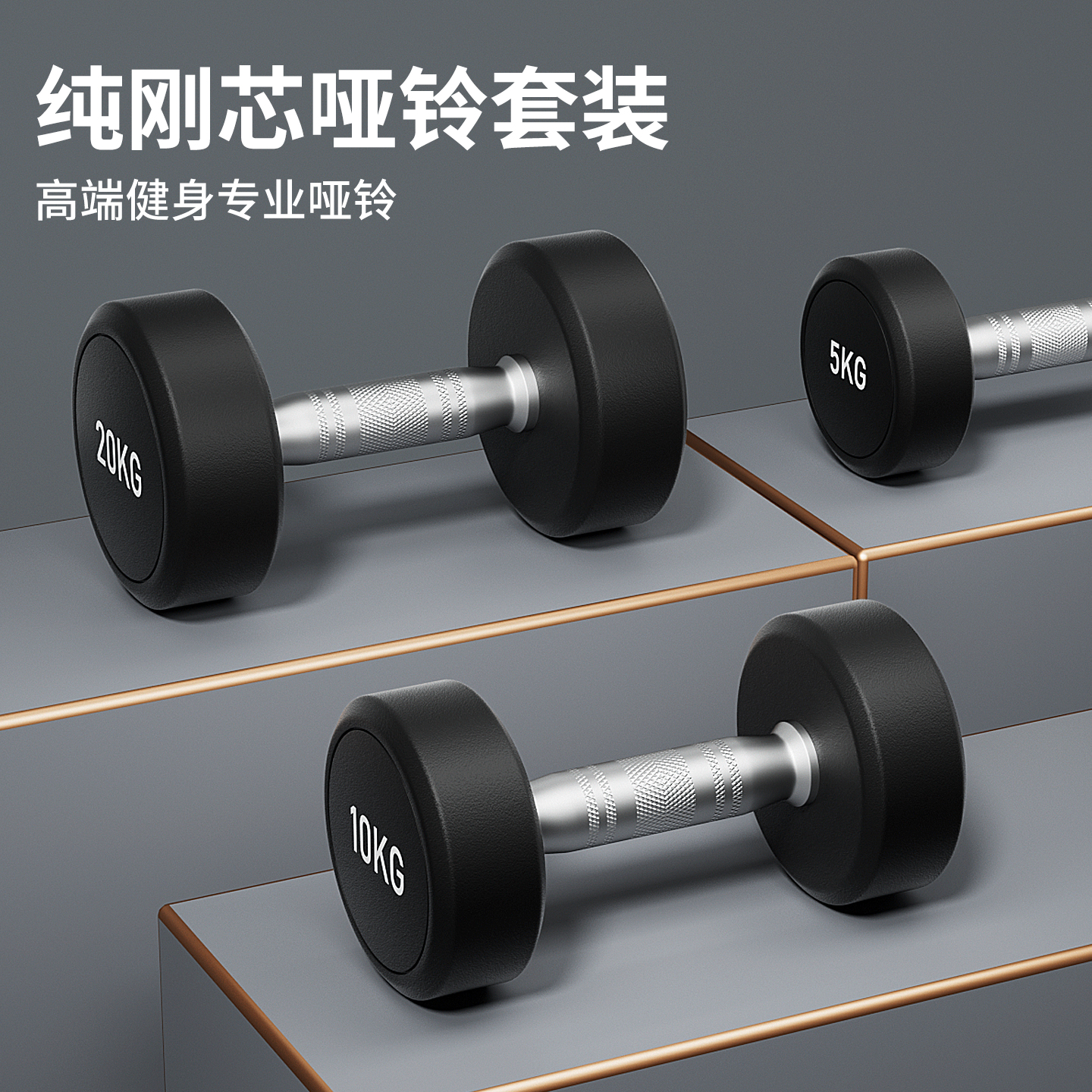 纯钢哑铃健身房同款商用家用包胶哑铃纯铁金属电镀男士家用练手臂