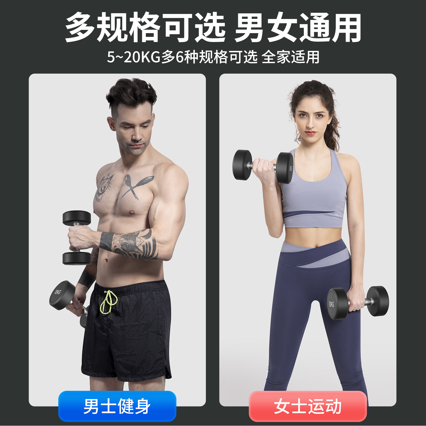 健身房同款纯钢哑铃悠赞小体积