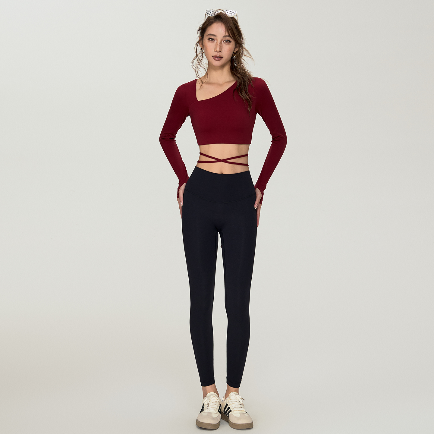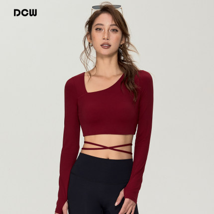 dcw斜领绑带紧身显瘦瑜伽长袖女