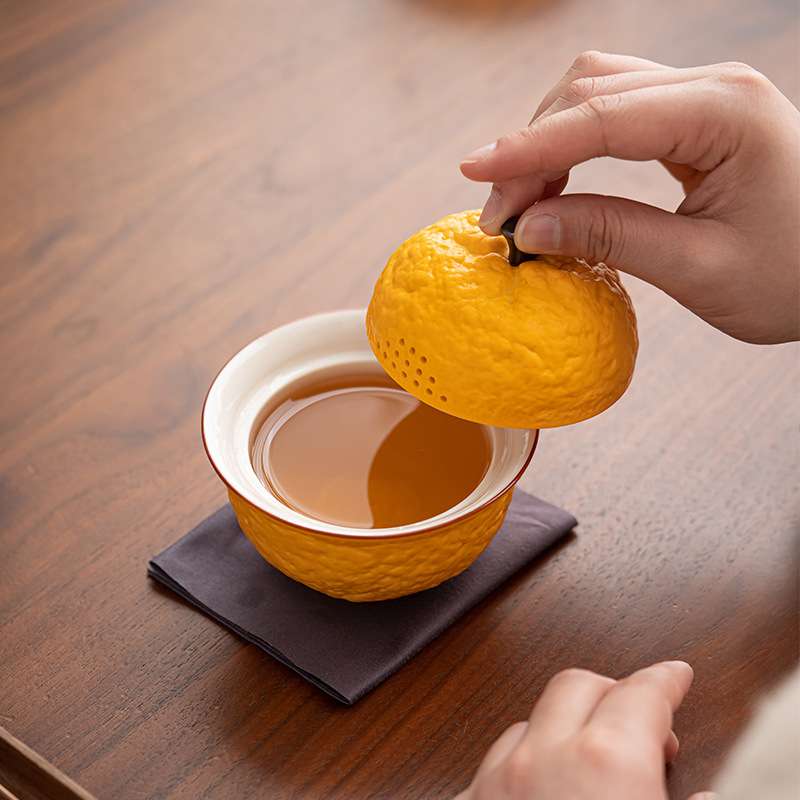 《橘子》盖碗茶杯陶瓷单个泡茶功夫茶具三才碗家用大吉大利创意陶