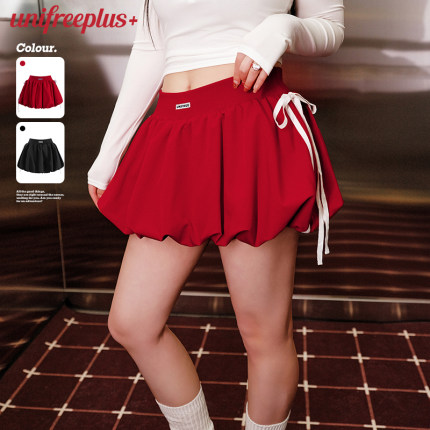 UNIFREEPLUS安可拉红花苞短裙大码女装蛋糕裙显瘦a字半身包臀裙