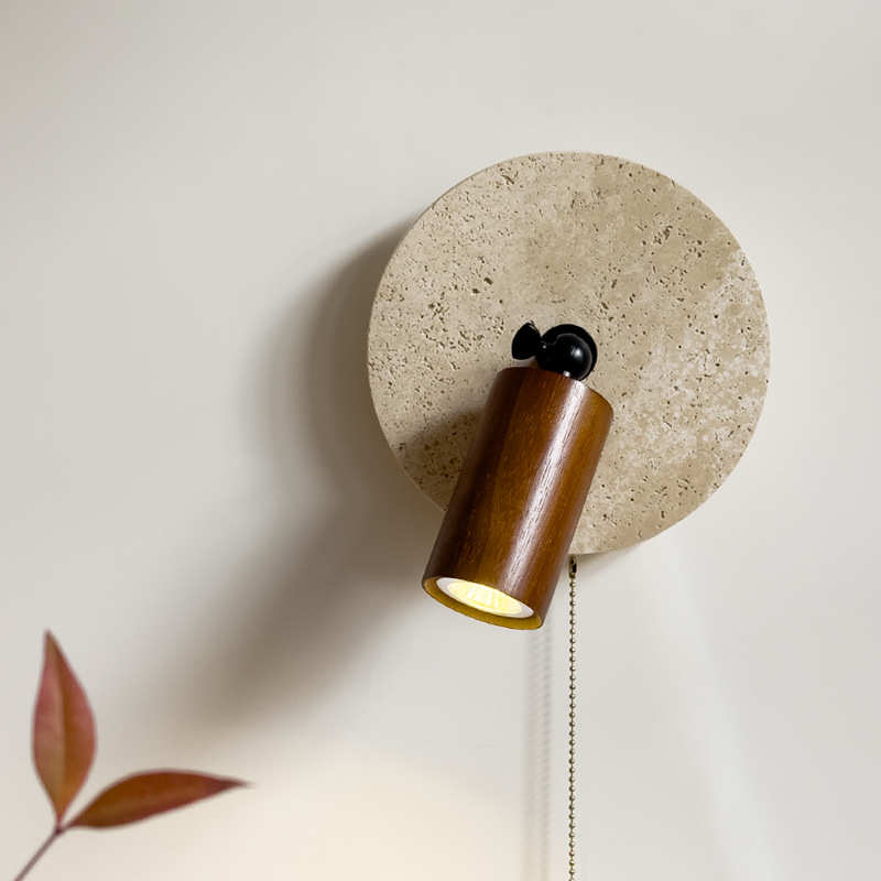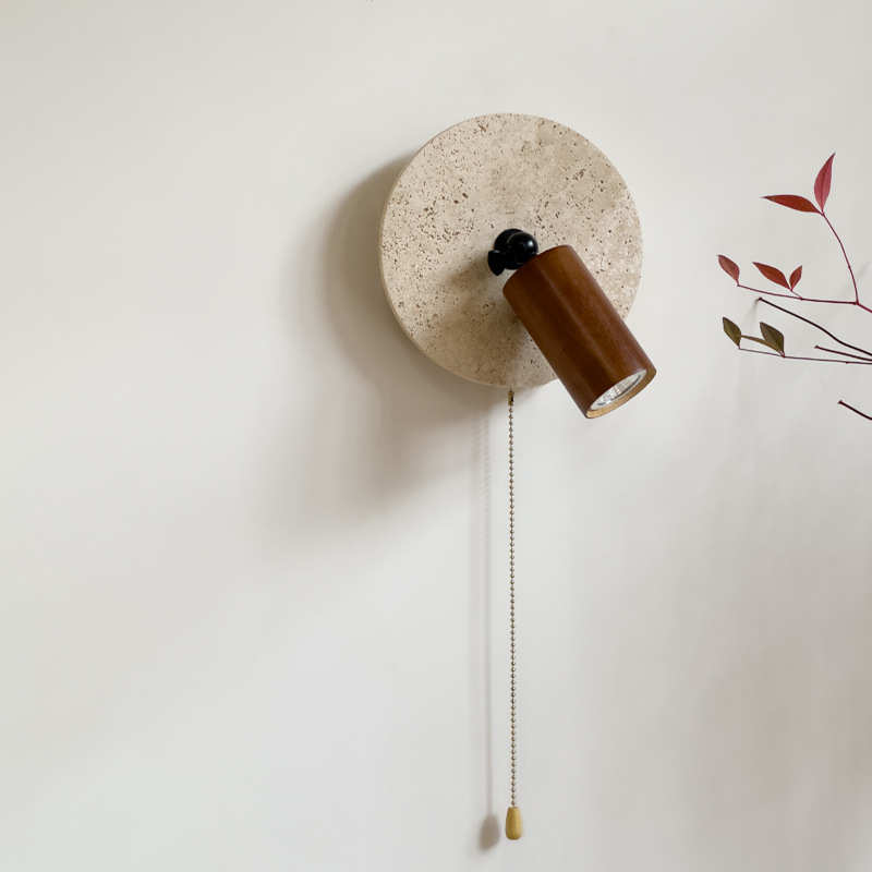 复古日式侘寂风黄洞石壁灯民宿简约卧室床头阅读灯拉线开关过道灯