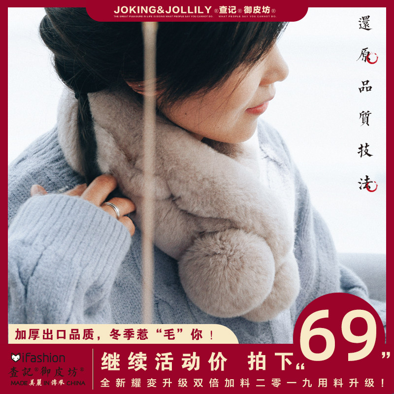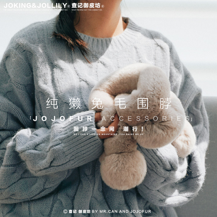 [御皮坊]真獭兔毛围巾女加厚整皮休闲百搭皮草韩版软妹潮流围脖