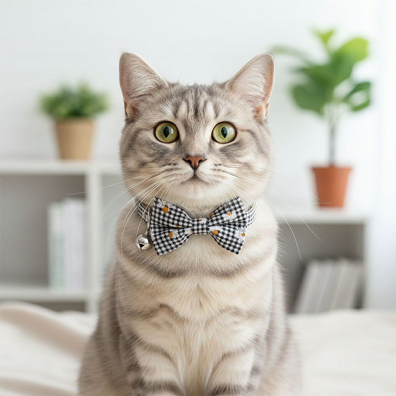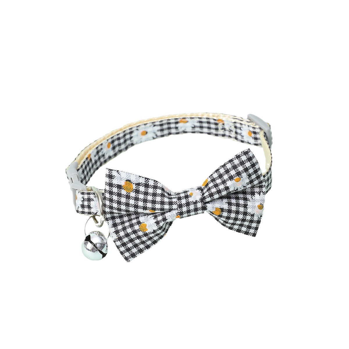 宠物项圈猫咪狗格子雏菊花朵蝴蝶结可调节铃铛项链领结挂脖