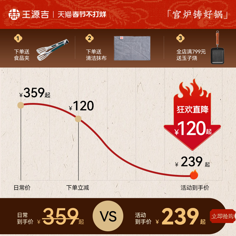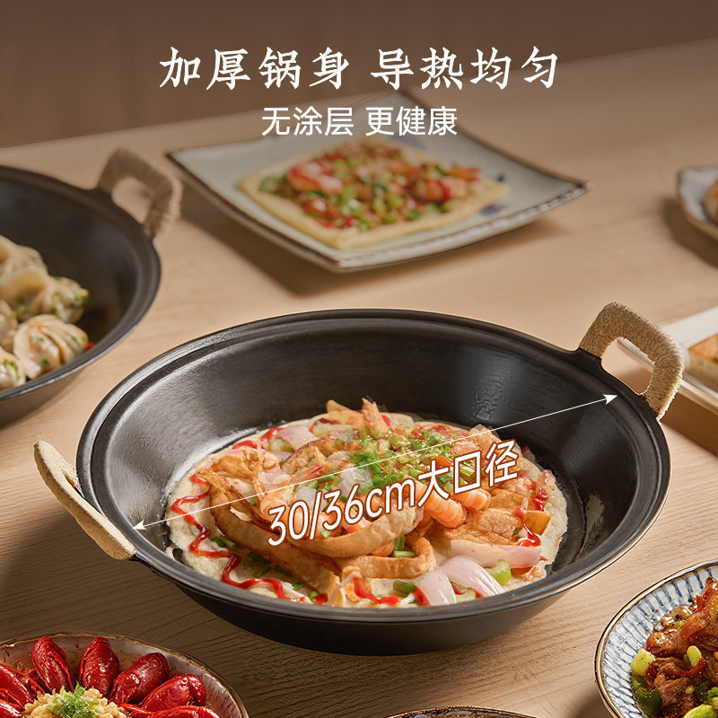王源吉双耳老式手工铸铁煎锅平底铸铁锅牛排煎锅无涂层不易粘锅
