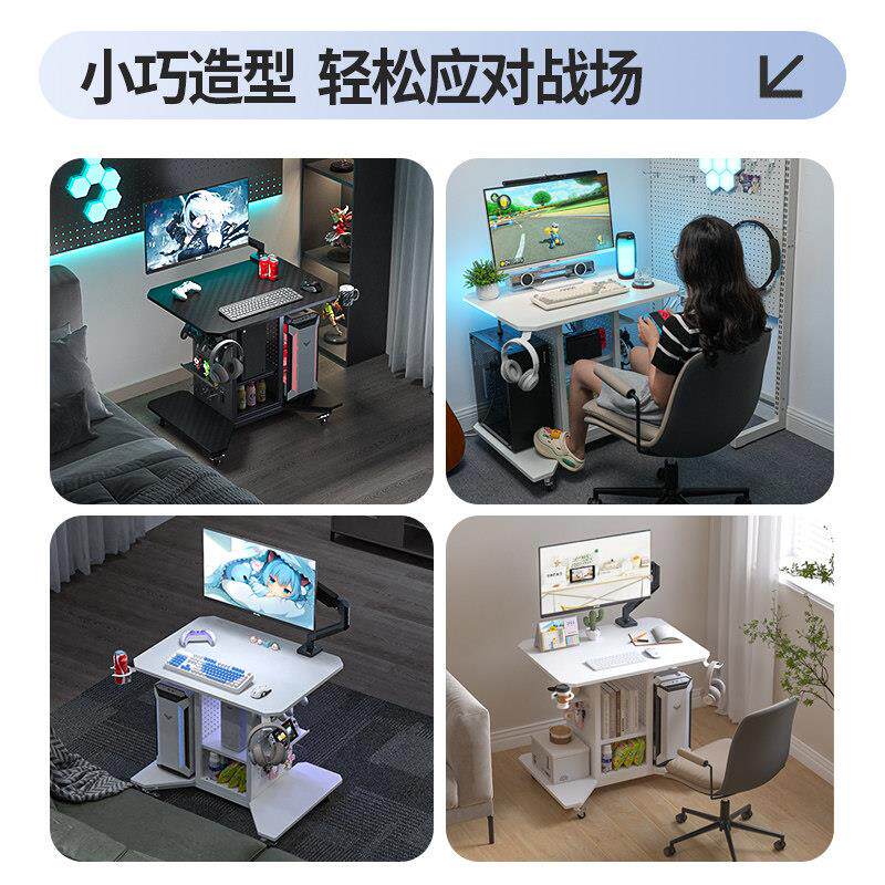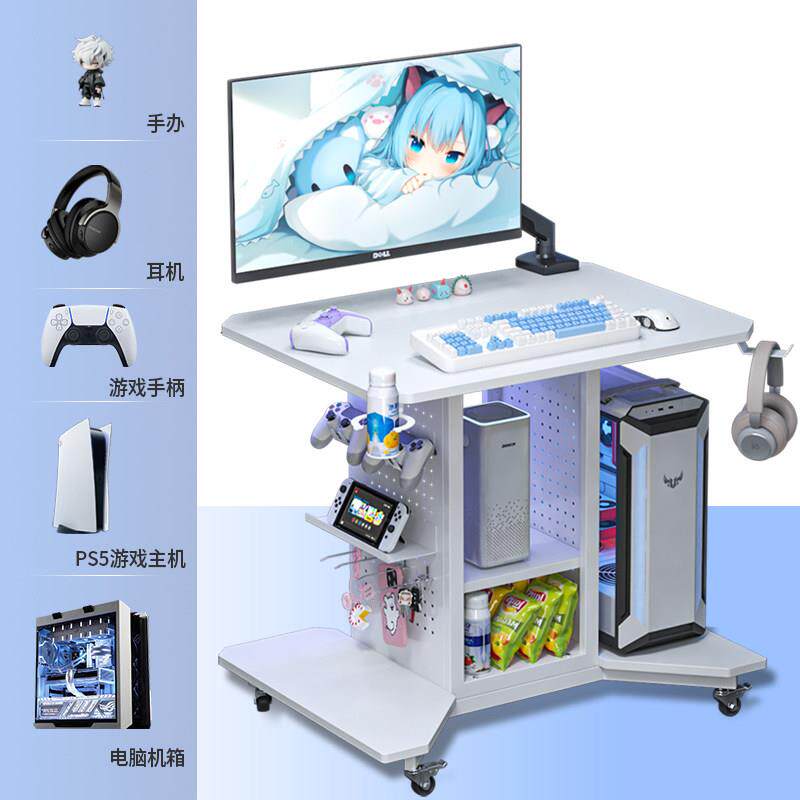 可移动床边桌大尺寸PS5收纳层架洞洞板电竞桌女生旋转电脑桌柜一