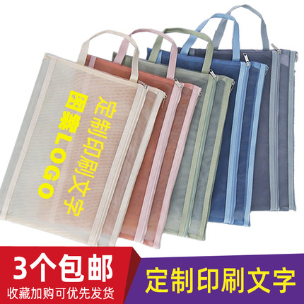 定制A4双层透明手提袋A5学生笔袋拉链收纳档案资料文件袋印刷LOGO
