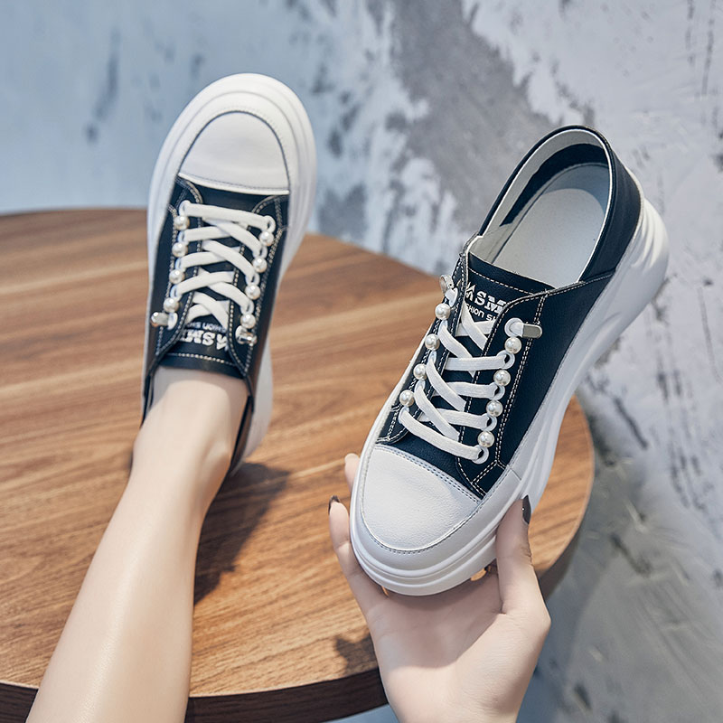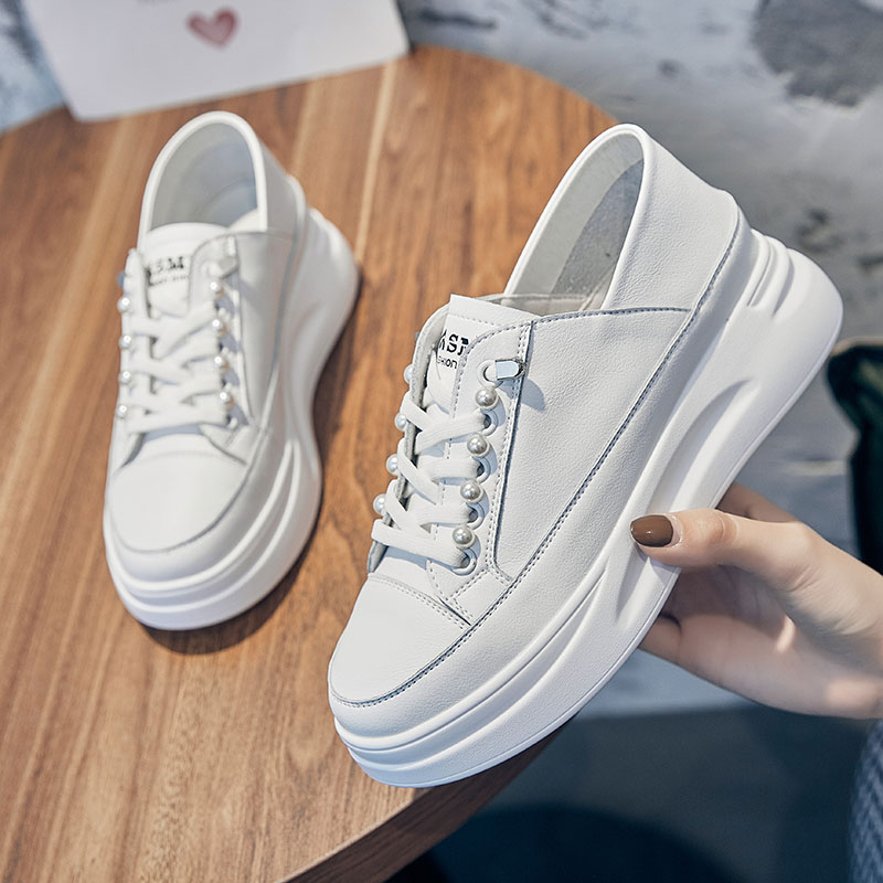 厚底两穿珍珠小白鞋女新款轻便休闲真皮单鞋简约百搭韩版增高板鞋