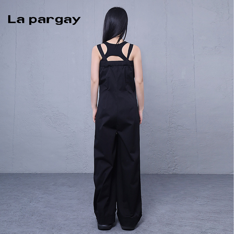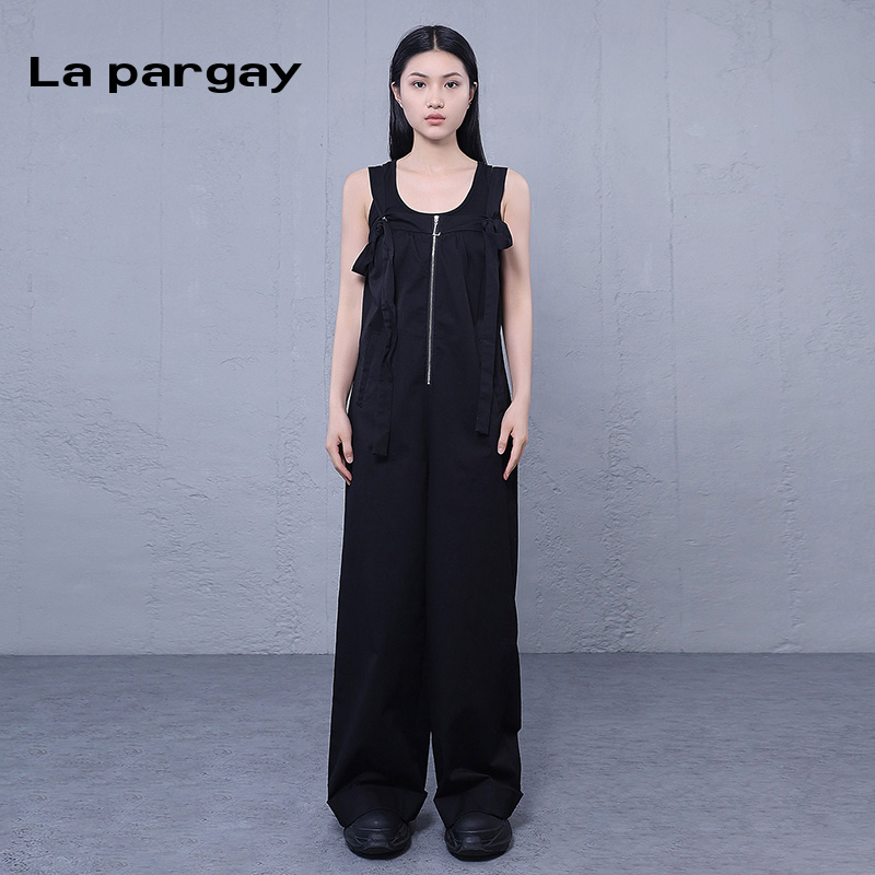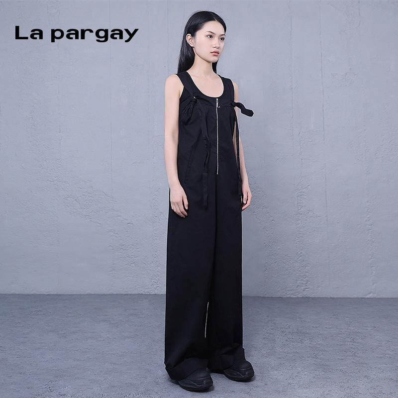 纳帕佳阔腿背带裤吊带连衣裤2025春季新款女式黑色个性设计感裤子